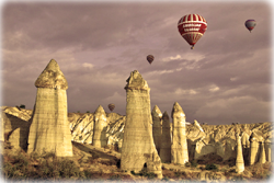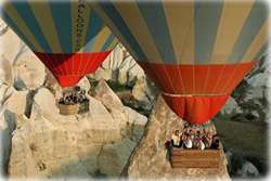 Kapadokya Bölgesinde Balon Uçuşları, meteorolojik koşulların uygun olduğu sabah saatlerinde yapılmaktadır