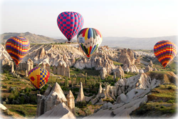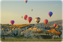 Kapadokya Bölgesinde Balon Uçuşları, meteorolojik koşulların uygun olduğu sabah saatlerinde yapılmaktadır